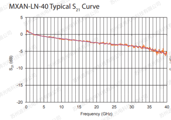 当我们测量得到调制器的S21曲线后,通过测试报告上低频Vp RF(50KHz)数值除以S21曲线(注意从S21功率到电压存在根号的关系)就可以得到半波电压随频率的变化,据此可以确定调制器任意频率的半波电压VpRF。