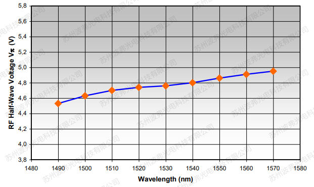 2.半波电压与波长λ有关,波长越大,半波电压越大,例如常规的iXblue调制器VpRF数值如下: