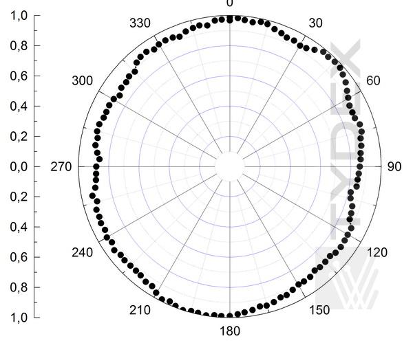 AWP L/4@60-95um的光学特性已在雷根斯堡大学(德国)太赫兹中心使用高功率脉冲NH3激光器在77um和90um进行了研究。 垂直偏振激光辐射以及通过AWP的圆偏振激光辐射被测量为分析仪旋转角度的函数。 典型测量信号如图6所示。与理想O形和8形的偏差不超过10%。 这些图表证实了线偏振辐射到圆偏振辐射的正确转换,反之亦然。