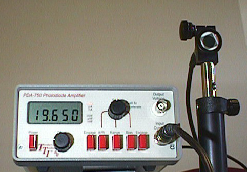 PDA-750是一款低噪声、高增益、跨阻放大器,旨在提供从光电二极管光电倍增管或其他类似电流源产生的电流的直接数字读数。PDA-750具有± 20 nA至± 20 mA的满量程输入范围和小于1 pA的噪声水平,可提供出色的动态范围。通过前面板控件数字输入A/W设置允许仪器以瓦特为单位显示电流测量值。A/W设置范围从1.000到0.100。可变偏置电源内置于仪器中,可与被测设备串联。它可以提供范围从-14.00到+ 14.00伏的数字可选电压。偏移控制允许将背景信号置零,最大为当前使用范围的± 200%。可充电电池将设备与电源隔离,并消除敏感测量期间可能出现的接地回路和/或电源线噪声的影响。他们将在两次充电之间为仪器供电大约10小时。电池充电时,本机可以正常工作。