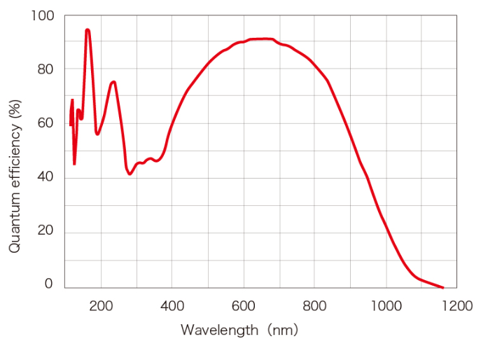 · 紫外到近红外波段高量子效率(200 nm波段量子效率超过60%,650 nm超过90%)